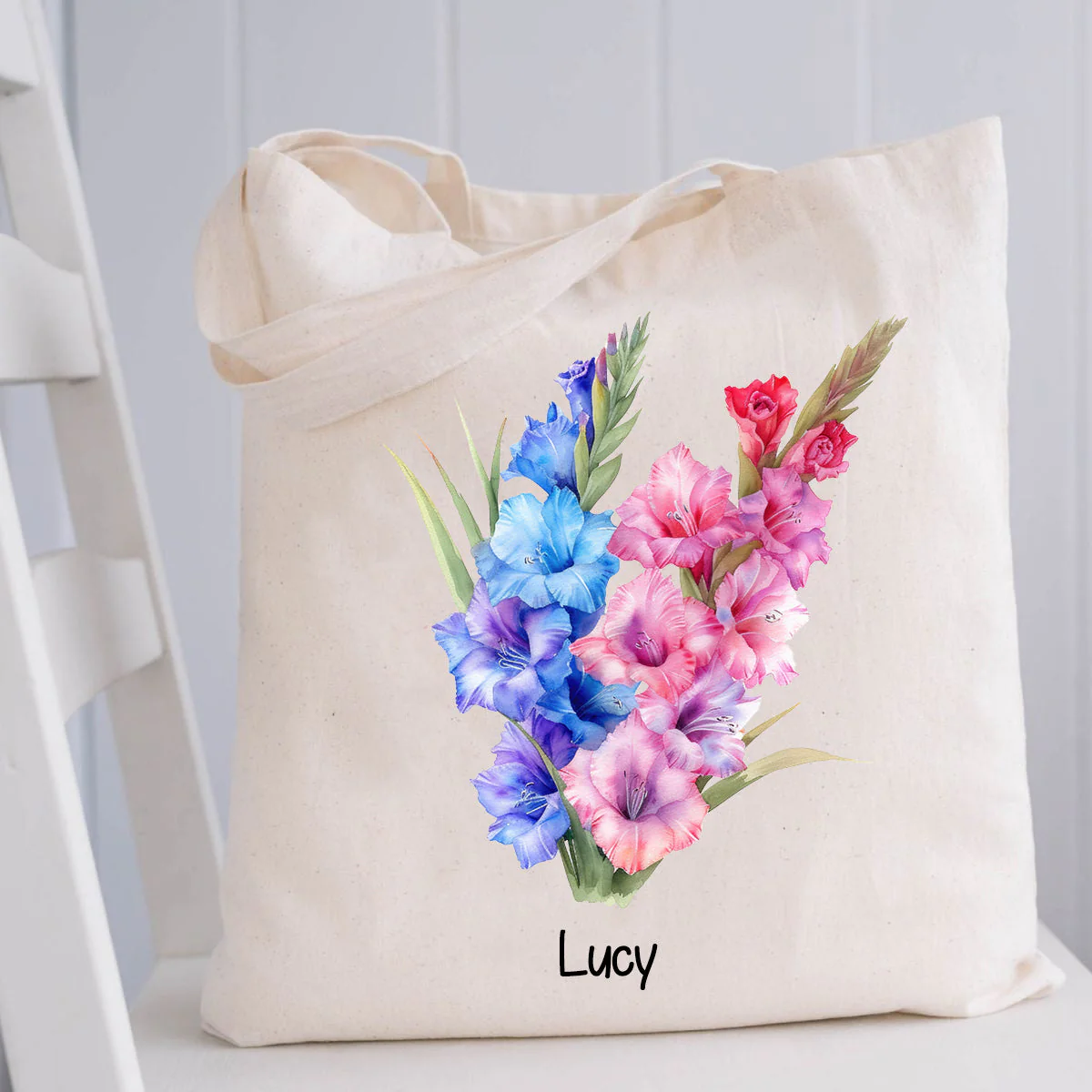 Personalized Birth Flower Canvas Tote Bag For Family/Friend