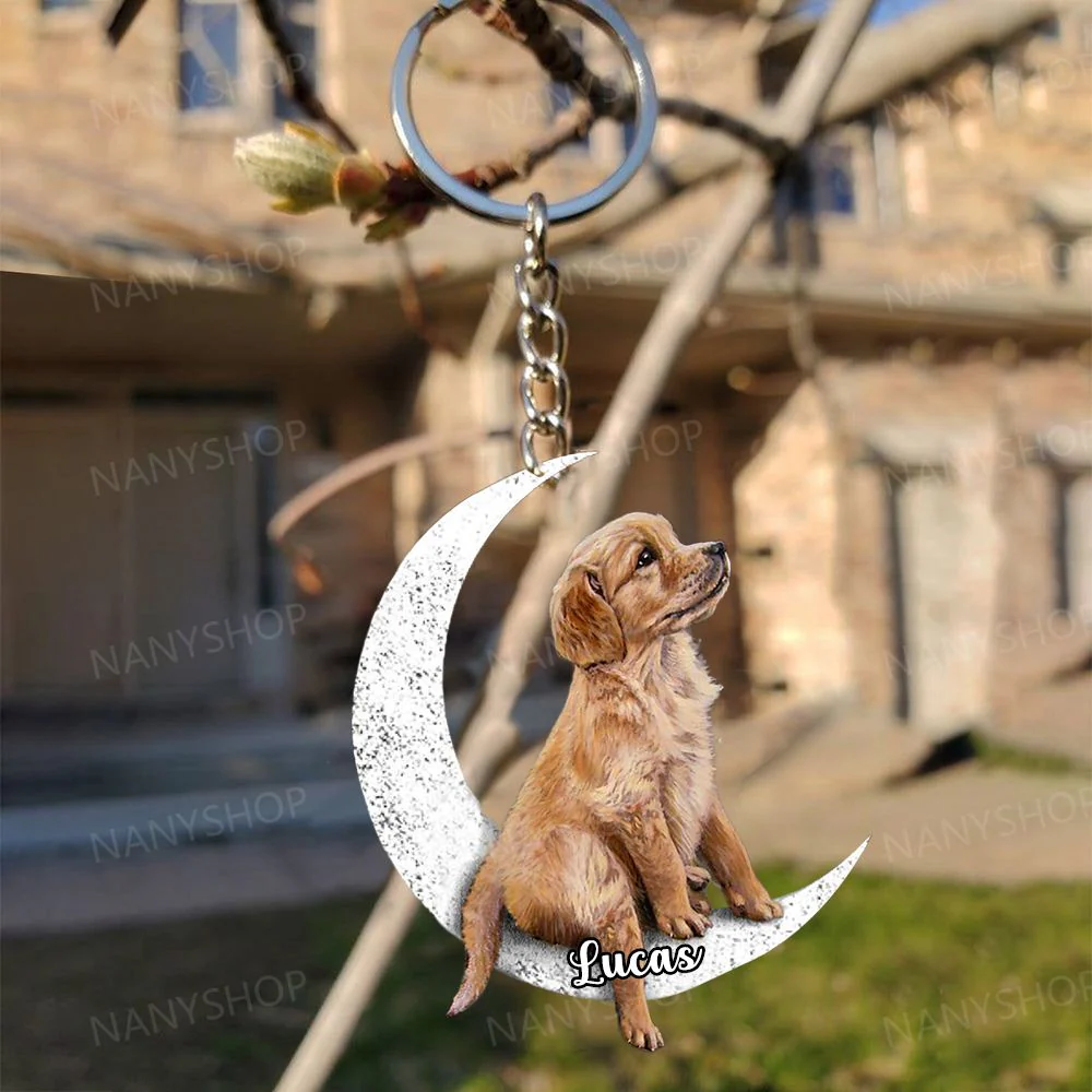 Personalized Dog Sit On The Moon Keychain-Gift For Dog Loves